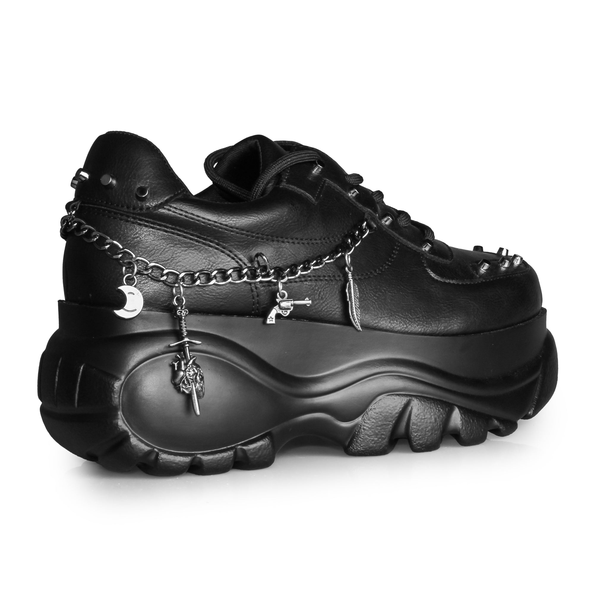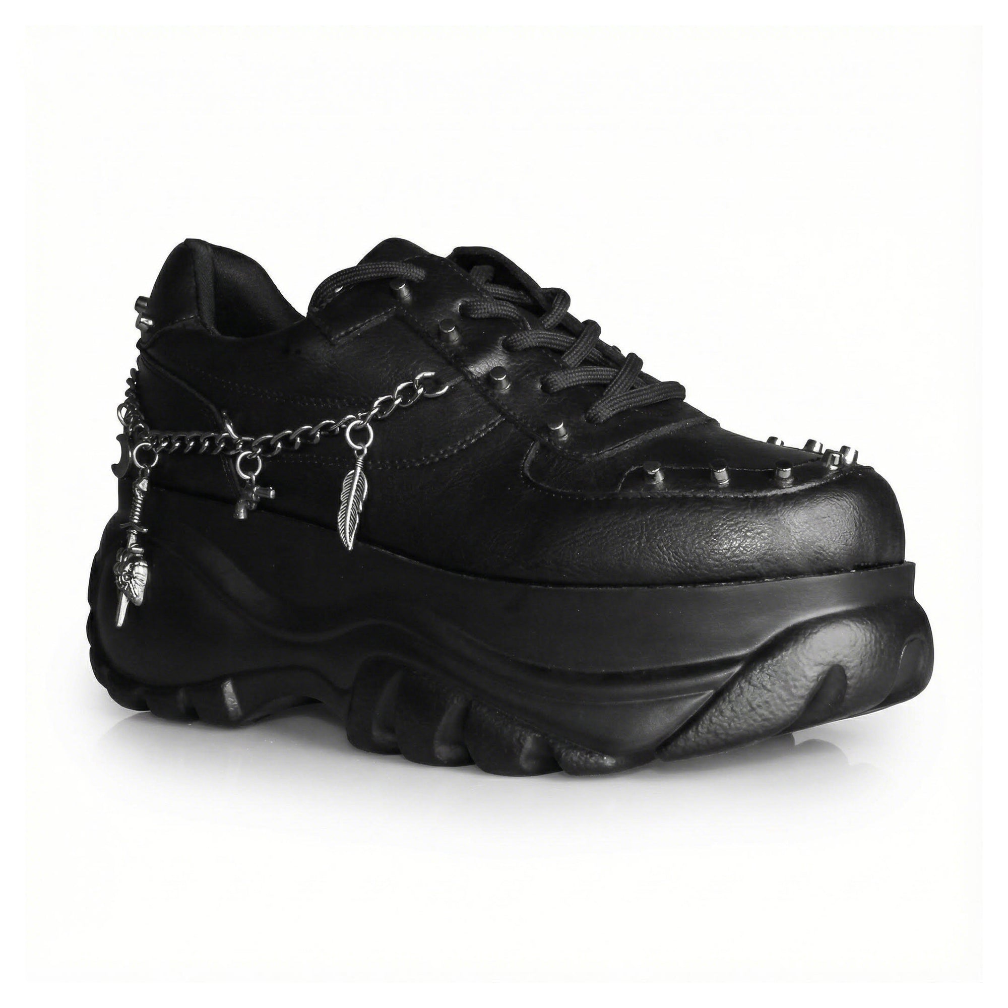 Women's Gothic Punk platform sneakers with stud, chain and charm detailing