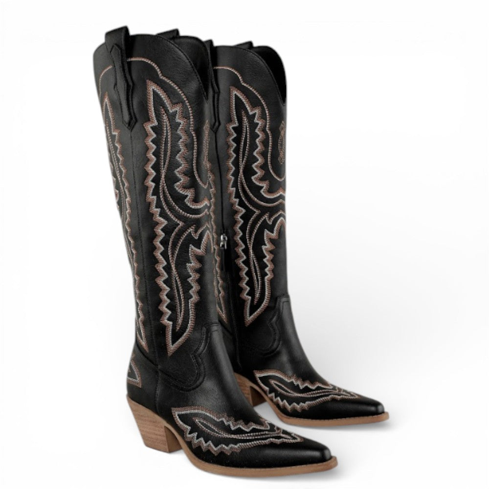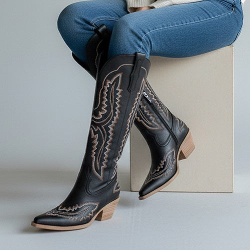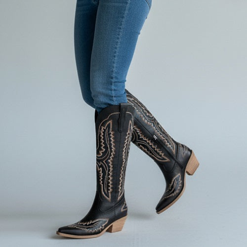 Elevate your western style with these statement-making knee-high cowgirl boots. Designed with a rich blend of traditional western and cowgirl aesthetics, these boots feature detailed stitching that adds depth and character to the silhouette. Offering a modern twist on classic cowboy elegance, they’re perfect for adding a sophisticated, fashion-forward touch to any outfit. Crafted for both style and comfort, these high-quality boots are an essential addition to any western wardrobe.