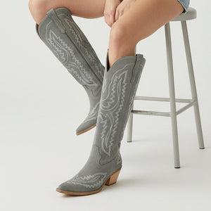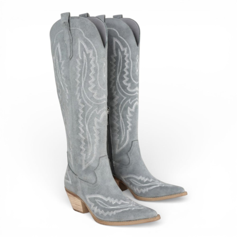Elevate your western style with these statement-making knee-high cowgirl boots. Designed with a rich blend of traditional western and cowgirl aesthetics, these boots feature detailed stitching that adds depth and character to the silhouette. Offering a modern twist on classic cowboy elegance, they’re perfect for adding a sophisticated, fashion-forward touch to any outfit. Crafted for both style and comfort, these high-quality boots are an essential addition to any western wardrobe.