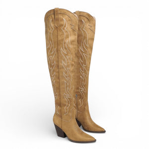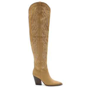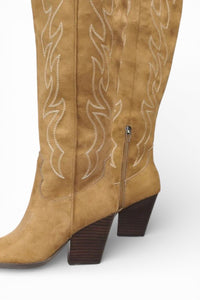Step into bold Western style with these Tall Suede Red Western Boots. Crafted in a striking red suede with eye-catching stitching, they add a fiery statement to any outfit. Designed with a close pointed toe, side zipper for easy wear, and a leather outsole, they’re finished with a 3.3" heel for confident elevation.