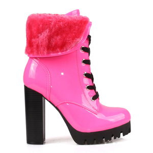 Women's Polished Thick platform Block Heel Ankle Boots