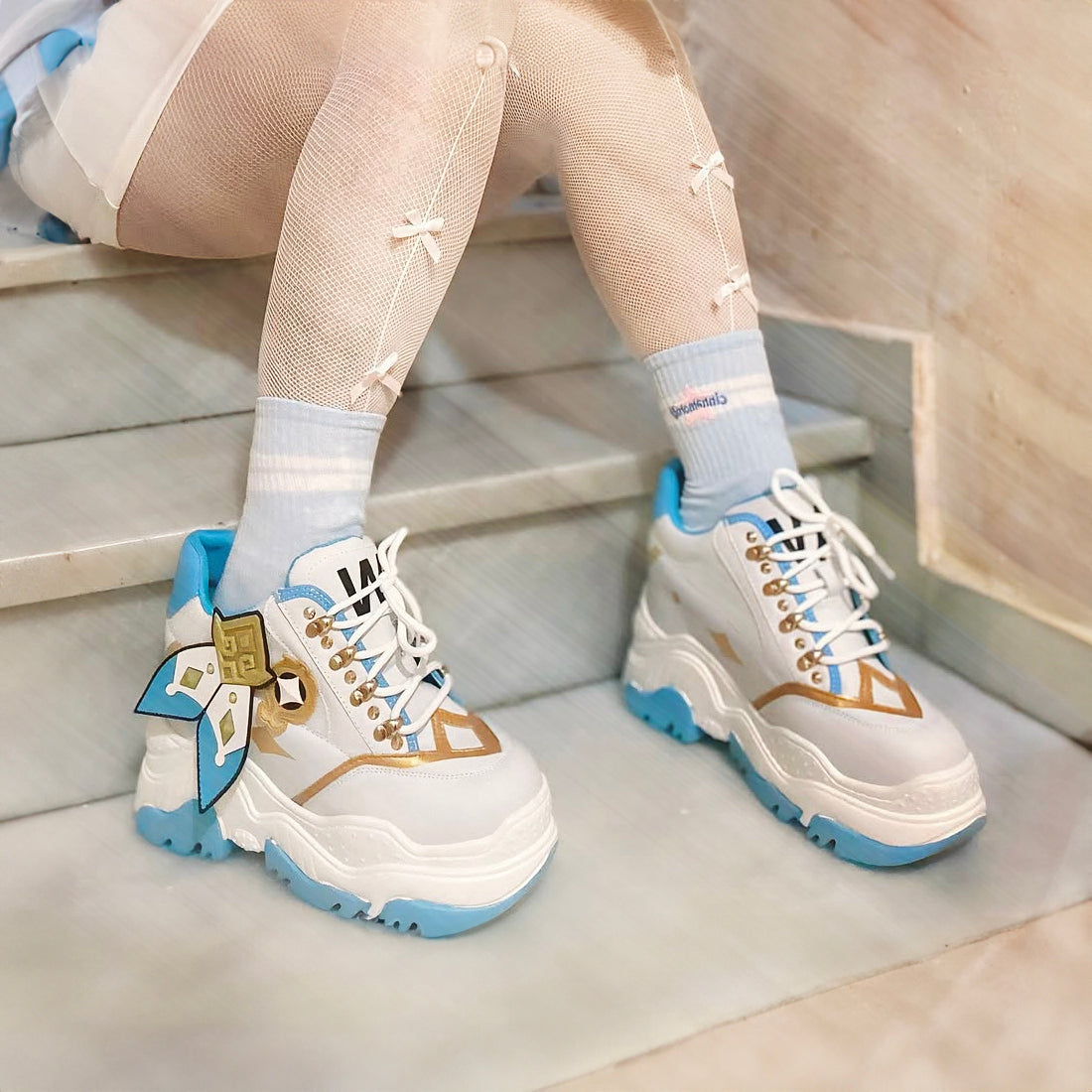 Genshin Impact Traveler Fan-made Lace Up Hidden Wedge Women's Sneakers in White